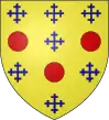 D'or, alias d'argent, à trois tourteaux de gueules, accompagnés de sept croisettes d'azur.[11] Alias trois tourteaux de gueules accompagnés de sept croisettes du même.[10],[11] |