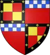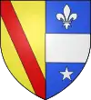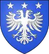 D'or, au chevron de sable, accompagné en chef de trois étoiles d'azur et en pointe d'un croissant de gueules.[4],[5] Alias d'azur, au chevron d'or, accompagné de trois étoiles en chef, et d'un croissant en pointe, le tout d'or. |