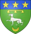 D'argent, à un chêne de sinople, posé sur une terrasse de même, et soutenu par deux levriers affrontés de gueules ; au chef de même, chargé de trois étoiles d'or.[22] |