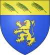 D'azur, au lion d'or, armé et lampassé de gueules ; au chef d'or chargé de trois palmes de sinople, posées en bande.[1] Alias écartelé, au 1 de sable à la tour d'argent, aux 2 et 3 d'azur au lion d'or armé et lampassé de gueules, au 4 de sinople à la bande d'argent. |