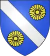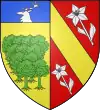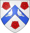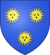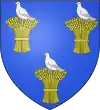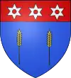 D'azur, à deux épis d'or ; au chef de gueules, chargé de trois molettes d'éperon d'argent.[1] |