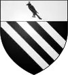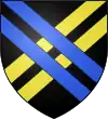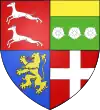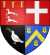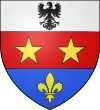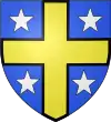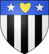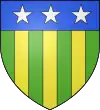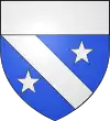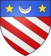 Parti : au 1, d'azur, au chevron d'or accompagné en chef de deux merlettes du même ; au 2, d'argent à trois pals de sable ; au chef de gueules brochant sur le tout, et chargé de trois étoiles d'or.[1] |