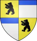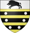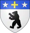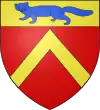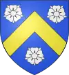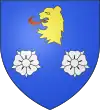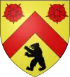 D'or, au chevron de gueules, accompagné de deux roses du même en chef, et d'un ours de sable en pointe.[1] Alias d'azur au chevron d'or accompagné de trois croissants d'argent. |