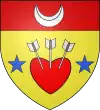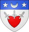D'argent, au cœur de gueules percé de trois glaives d'argent ; au chef d'azur, chargé d'un croissant d'argent accosté de deux étoiles du même.[1] |