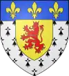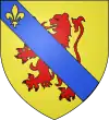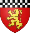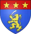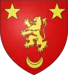 D'azur, au lion d'or armé et lampassé de gueules, au chef d'or chargé de trois molettes d'azur ; à la bordure de même.[1] |