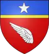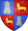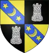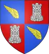 Écartelé, aux 1 et 4 d'azur, au demi-vol dextre éployé d'or ; aux 2 et 3, de gueules, à la tour d'argent donjonnée de trois pièces, maçonnée de sable.[1] |