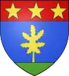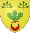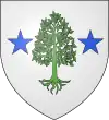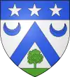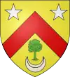 D'or, à la bande d'azur, accostée en chef d'un croissant de gueules et en pointe d'un arbre de sinople ; au chef d'argent chargé de trois étoiles d'azur.[1] |