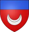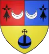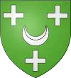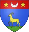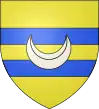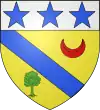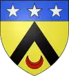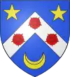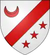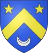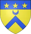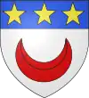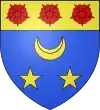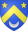 D'or, au chevron de sable, accompagné d'un croissant de gueules en pointe ; au chef d'azur chargé de trois étoiles d'argent.[1] |