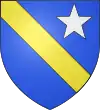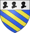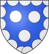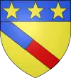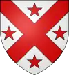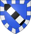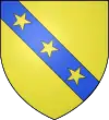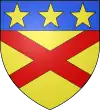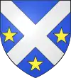 D'azur, à trois étoiles à six rais d'or ; au chef cousu de gueules ; et pour brisure, un orle d'argent chargé de onze tourteaux de sable.[1] |