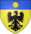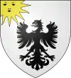 D'argent, à l'aigle au vol éployé de sable, fixant un soleil d'or mouvant du canton dextre.[1] |