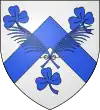D'azur, à trois trèfles d'or ; au chef cousu de gueules chargé de trois étoiles d'argent.[1] Alias de gueules à trois trèfles d'argent, au chef cousu d'azur chargé de trois étoiles d'or. |