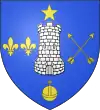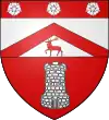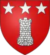 De gueules, à la tour d'argent, à trois étoiles de même, rangées en chef.[1] Alias à une tour d'argent accompagnée de trois étoiles d'or posées une en chef et deux en flancs. |