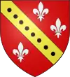 D'azur, à la bande d'argent accompagnée de trois fleurs de lys d'or, rangées en chef.[1] |