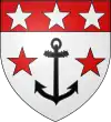 De gueules, au lion d'or armé et lampassé de sable ; au chef d'argent, chargé d'une ancre d'azur.[1] Alias au chef d'argent chargé d'une fasce vivrée d'azur. |
