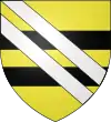 D'azur, au chef d'or.[1] Alias écartelé ; aux 2 et 3 d'or à un lion de sable armé et lampassé de gueules, au chef échiqueté d'argent et de gueules de trois traits. |