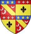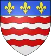 Fascé ondé d'argent et de gueules, à six pièces ; au chef d'azur chargé de trois fleurs de lys d'or.[1] |