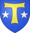 D'azur, au château d'or, surmonté d'une étoile du même et accosté de deux étoiles aussi d'or en pointe.[1] |
