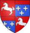 D'azur, au chevron d'or, accompagné de trois licornes d'argent saillantes, 2 et 1.[1] |