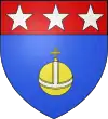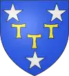 D'azur, au sautoir d'argent accompagné de trois étoiles d'or, une en pointe et une sur chaque flanc.[1] |