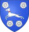 D'azur, au lévrier d'argent, colleté de gueules, accompagné de quatre roses d'argent, 2 et 2.[1] |