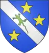D'azur, à une bande d'argent, chargée d'un lézard de sinople, accompagnée de trois étoiles d'or, deux le long de la bande et une en pointe.[1] |