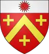 De gueules, au chevron d'or accompagné de trois croisettes du même ; au chef d'argent chargé d'un soleil de gueules.[1] |