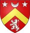 De gueules, au chevron d'or, accompagné en pointe d'un lion d'argent, et en chef d'un croissant entre deux étoiles du même.[1] Alias d'hermine, papelonné de gueules. |