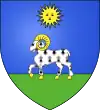 D'azur, au bélier passant d'hermine sur une terrasse de sinople, au soleil rayonnant d'or en chef.[1] |