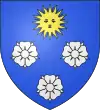 D'azur, à trois roses d'argent surmontées d'un soleil rayonnant d'or.[1] |