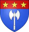 D'azur, à la hache d'armes d'argent ; au chef de gueules, à trois étoiles d'or.[1] |