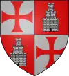 écartelé, au 1 et 4 d'argent à la croix pattée de gueules et au 2 et 3 de gueules, à une tour d'argent, portillée de sable, mouvant de la pointe et sommée de deux tourtelles d'argent, l'une sur l'autre, le tout maçonné de sable[9],[11]. |