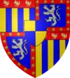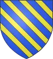 D'argent à une bande de cinq fusées de gueules ; au lambel à cinq pendant d'azur brochant.[5],[12] | |