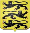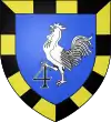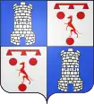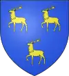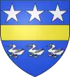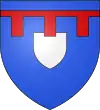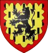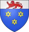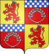 D'azur aux trois broyes d'or liées d'argent, au chef d'argent chargé d'un lion issant de gueules.[8] | |