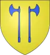 D'or au château donjoné de trois tours crenelées de gueules, celle du milieu plus élevée, et accoté de deux haches d'armes d'azur adossées plantées en pal de chaque côté de la tour[2]. |