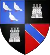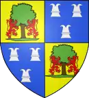 Écartelé : aux 1 et 4 d'azur, à trois pommes de pin d'or, la queue en l'air, posées 2 et 1; aux 2 et 3 d'argent, à l'aigle de sable au vol abaissé (qui est de Grangers)[58]. |