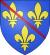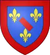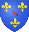 D'azur, à trois fleurs de lis d'or, au filet de gueules en bande. [20]. |