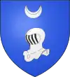 D'azur, au casque d'argent posé de profil, surmonté d'un croissant de même[36]. |