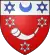 D'or, au lion de gueules ; au chef d'azur chargé de deux étoiles d'or[17]. |