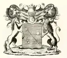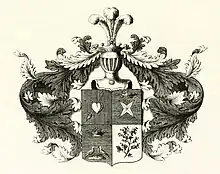 - Nés hors mariage, fruits de son union illégitime avec la française Catherine Imbert (Екатерина Любимовна Эмбер) († 1809) ; le diplomate les reconnut rapidement (les armes ici présentées sont justement celles qui leur furent attribuées en 1790).