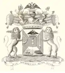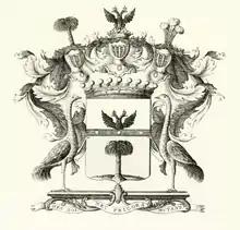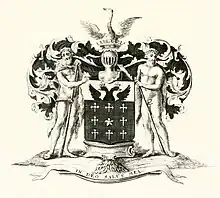 Liste des blasons (et des noms[27] de famille concernées) enregistrés[28], listés selon l'ordre alphabétique romain[29].