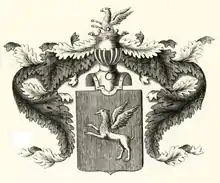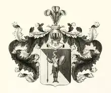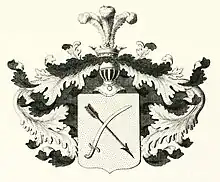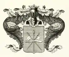 Archenievski ou Archeniesky ; olim Archeniefsky[57] Ancienne noblesse, attestée depuis 1654[58] ; d'origine lituanienne, principalement implantée à Smolensk et Tchernigov ; a fourni un grand nombre de hauts fonctionnaires de l'Empire. Illustrée notamment par Isaïe Zakhariévitch († 1787), gouverneur de Smolensk, son fils Pierre Isaïévitch (ru) († 1803), lui aussi gouverneur de Smolensk, le général Jacques Stepanovitch (ru) († 1771), gouverneur de Nijni Novgorod, le général Nicolas Yakovliévitch (ru) (1743-1802), gouverneur d'Astrakhan et de Smolensk, son frère Pierre Yakovliévitch (1748-1811), gouverneur de Moscou, et le mathématicien Vassili Kondratiévitch (ru) (1758-1808). Pour défaut de descendance masculine, l'Empereur Alexandre Ier autorisa (décret du ) le lieutenant Ilya Gorodetsky, issu d'une famille l'ancienne noblesse de Smolensk, à relever les nom et armes de Pierre Yakovliévitch, d'où postérité. |
