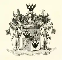 Ce chapitre reproduit donc les armes[30] des familles russes (ou jureuses) qui ont fait l'objet d'enregistrement et (pour leur très grande majorité) de publication dans l'Armorial général.