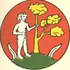 de gueules à un enfant d'argent, tourné à senestre, empiétant un mont de sinople, tenant un arbre d'or mouvant du mont et accompagné de deux feuilles de tulipe d'argent mouvant elles aussi du mont.[4] |