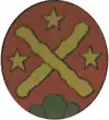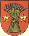 de gueules à une gerbe d'or flanquée de deux étoiles du même.[réf. nécessaire] |