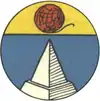 d'azur à une pyramide d'argent sur un socle du même (et sous une arche du même), au chef d'or chargé d'une pelote de gueules.[9],[4] |