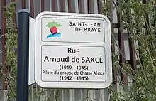 - La ville de Saint-Jean-de-Braye a choisi d'honorer la mémoire d'Arnaud de Saxcé en donnant son nom à une rue de l'écoquartier du Hameau (inaugurée le ).
