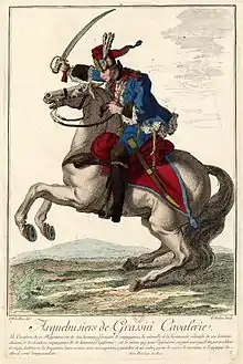 - Voir également: Liliane et Fred Funcken, L'Uniforme et les Armes des soldats de la guerre en dentelle, Tome 2, figurines 9 de la planche « France, troupes légères » p.39 et Charles Pierre Victor Pajol : Les guerres sous Louis XV, Tome 7, p.234.