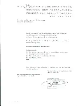 - L'arrêté royal pour la Maison royale qui n'est pas public et est pris par le souverain uniquement pour les nominations à la cour. Le souverain peut également prendre des arrêtés concernant sa vie privée comme la décoration de la cour[1], l'octroi d'une récompense (attribution d'un ordre de la Maison royale) ou des règles sur le prédicat de « royal » et de « fournisseur de la cour ». Dans ce cas, l'on parle également de Koninklijke Beschikking (du néerlandais, littéralement : Décision royale).