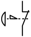 Le symbole électrique de l'arrêt d'urgence est un champignon (arc de cercle sur ligne droite) sur une tige. La droite de la tige est dans sa partie inférieure le support d'un côté d'un triangle rectangle, dont la pointe est dirigée à l'opposé du champignon et termine la tige. En prolongement de la tige, les pointillés de commande de l'interrupteur. Dans les documentations techniques, il est généralement désigné par la dénomination ARU (pour arrêt d'urgence) ou BAU (bouton d'arrêt d'urgence).