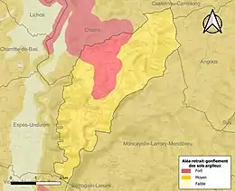 Le retrait-gonflement des sols argileux est susceptible d'engendrer des dommages importants aux bâtiments en cas d’alternance de périodes de sécheresse et de pluie[37]. La totalité de la commune est en aléa moyen ou fort (59 % au niveau départemental et 48,5 % au niveau national)[Carte 4]. Depuis le , en application de la loi ELAN, différentes contraintes s'imposent aux vendeurs, maîtres d'ouvrages ou constructeurs de biens situés dans une zone classée en aléa moyen ou fort[Note 7],[38].